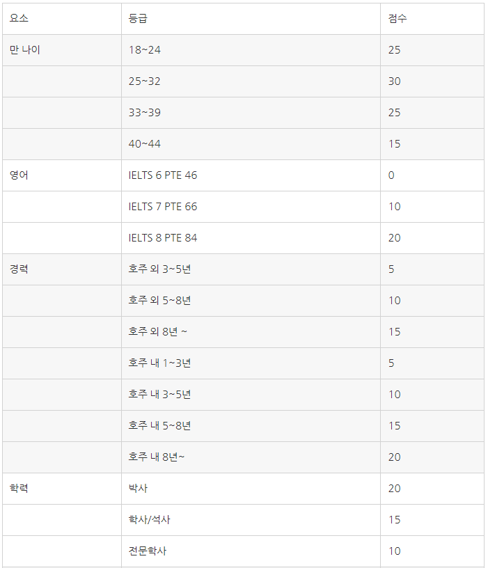 - 점수를 획득하여 초과 점수를 기반으로 지원서를 제출합니다. 이때 나이, 경력, 교육, 언어 능력 등이 고려됩니다.